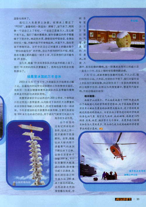 主人翁简介:姚明旿,男,28岁,现为西安电子科技大学刘增基教授的在读博士生,主要从事通信方面的研究工作。2001年11月15日至2003年3月20日,作为我国第18次南极科学考察队的一名队员,姚明旿搭乘“雪龙”号极地科学考察船,从上海起航,前往南极中山站进行科学考察活动,进行极光、地磁、电离层、宇宙噪声等高空大气物理观测和流星余迹通信实验工作。在南极期间,姚明旿被选派参加了我国首次埃墨里冰架考察队,参与通信保障、冰心钻取、冰雷达测量和物质平衡观测等任务,是进行越冬考察的16名队员之一。今年3月20日,在南极度过两夏一冬后,姚明旿随我国第19次南极科考队回到祖国。
