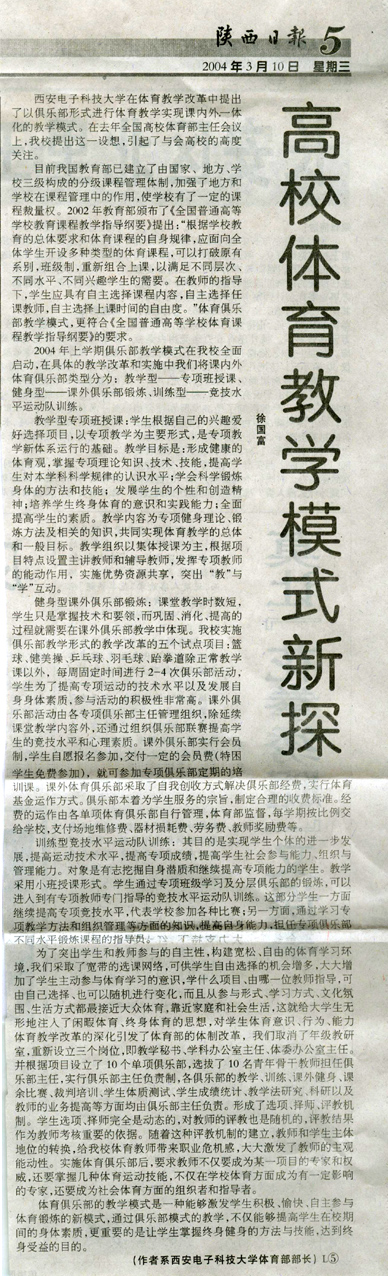 【陕西日报】高校体育教学模式新探