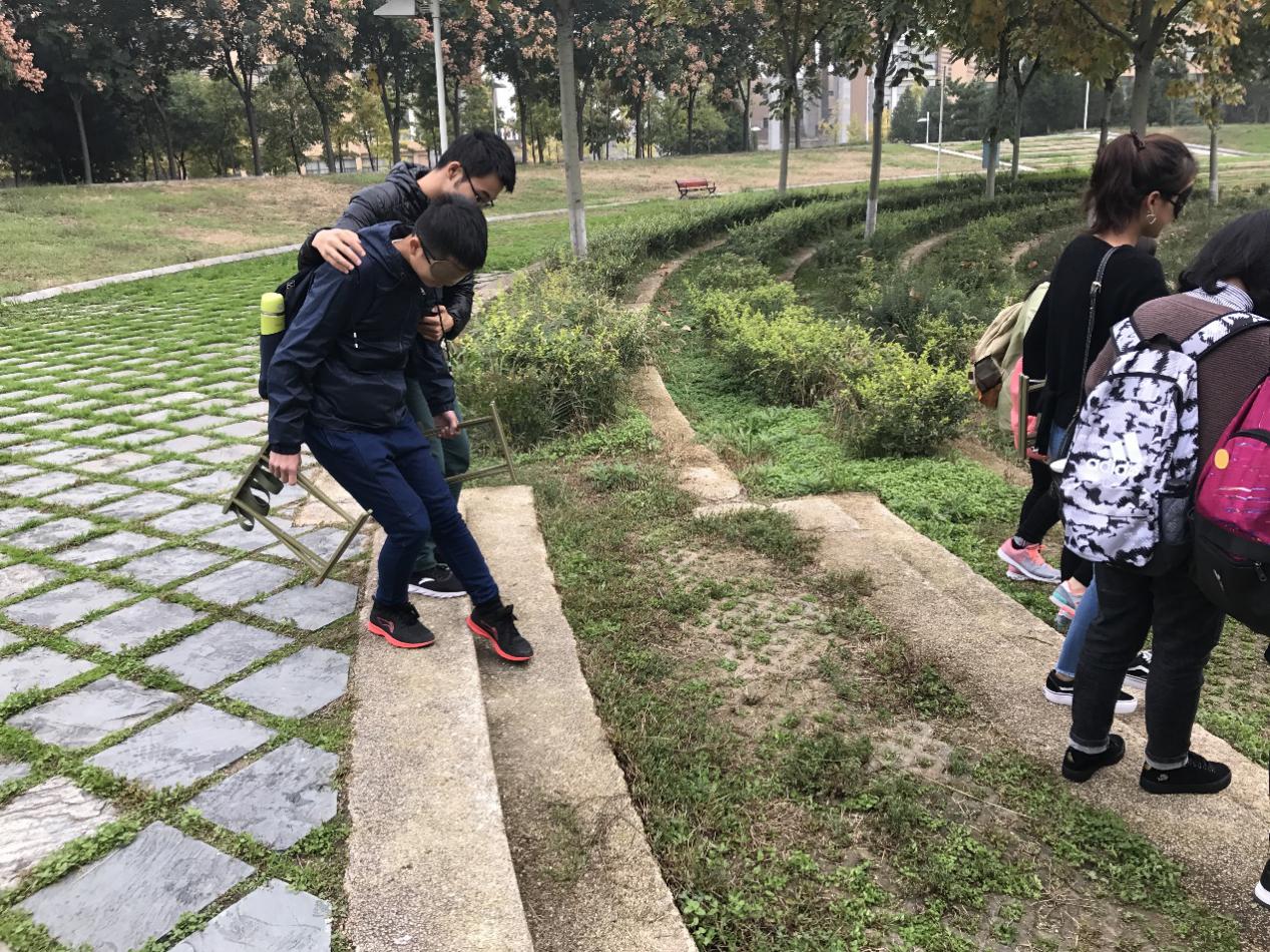 培训的第二项,由魏萍教授带领学生进行“信任盲行”体验活动。