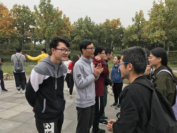随后,魏萍教授和王博韬老师带领学生们进行了“刮大风”“五毛一块”等心理团体辅导活动。这样的一系列活动给来自不同学院不同班级的同学们提供了一个相互认识,彼此了解,快速融入集体的机会。也希望他们能够将团体辅导所学到的知识和游戏运用到班级活动中去。