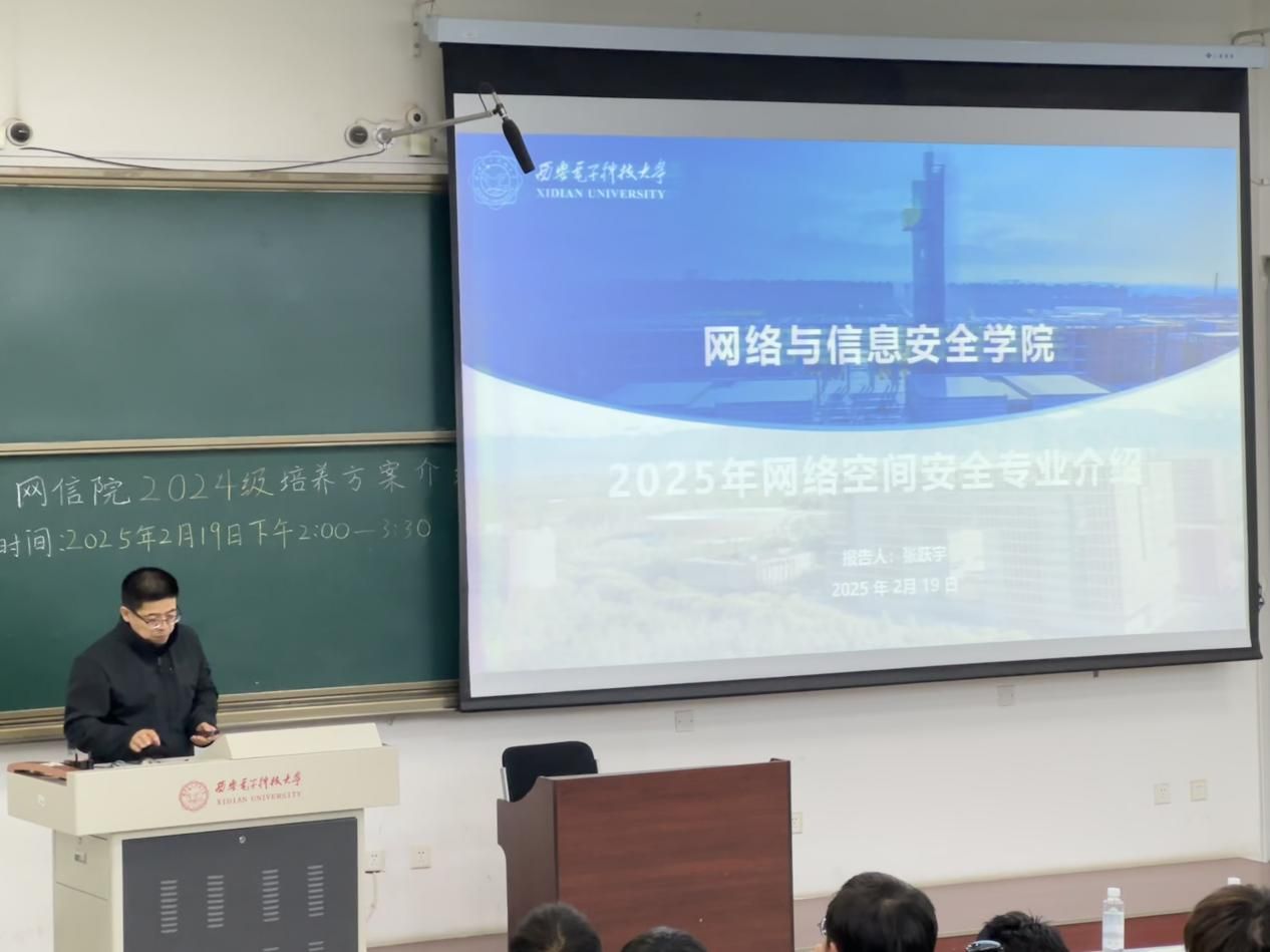 西电新闻网讯(通讯员 赵永乐 何良)为帮助2024级计算机类(网络安全)专业学生更好地了解专业情况,明确自身定位、找准专业方向,为专业分流做好充足准备,2月19日下午,网络与信息安全学院召开2024级本科生培养方案宣讲交流会。网信院副院长杨超、信息安全系主任吕锡香、实验中心负责人张跃宇,为329名计算机类(网络安全)专业学生介绍学院人才培养情况及新修订的2024级培养方案,会议由学院教育教学办公室主任杜小刚主持。
