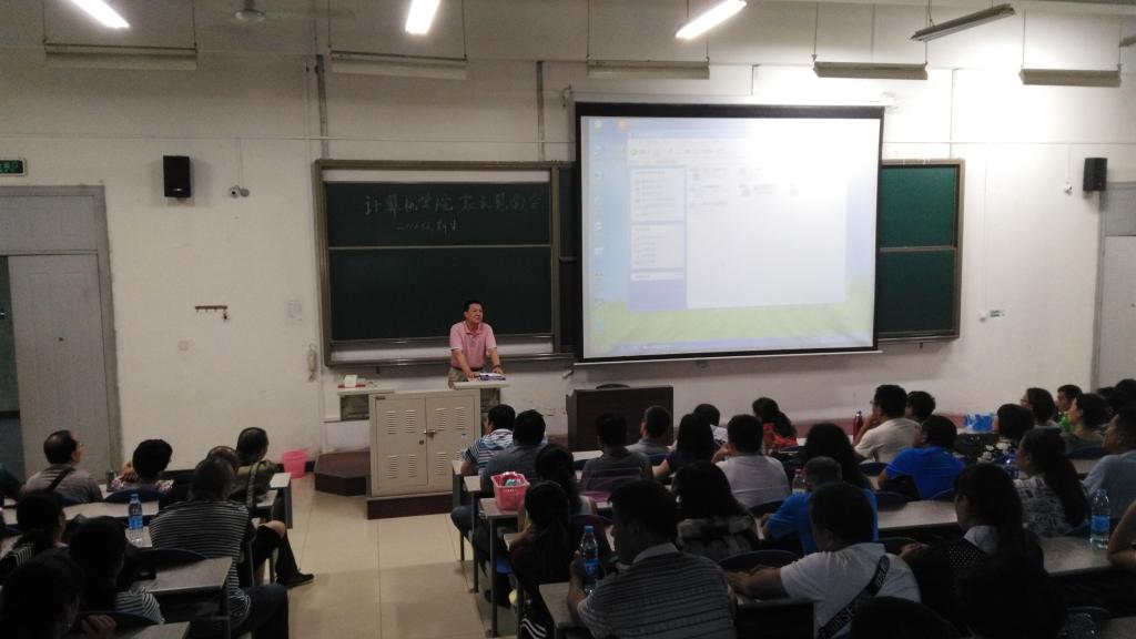 西电新闻网讯(通讯员 潘超)8月27日下午,计算机学院2016级新生家长见面会在B楼433教室举办,学院院长王泉、副院长王卫东、新生辅导员孙振蔚和学院团委书记潘超参会,近300名学生家长应邀参会。