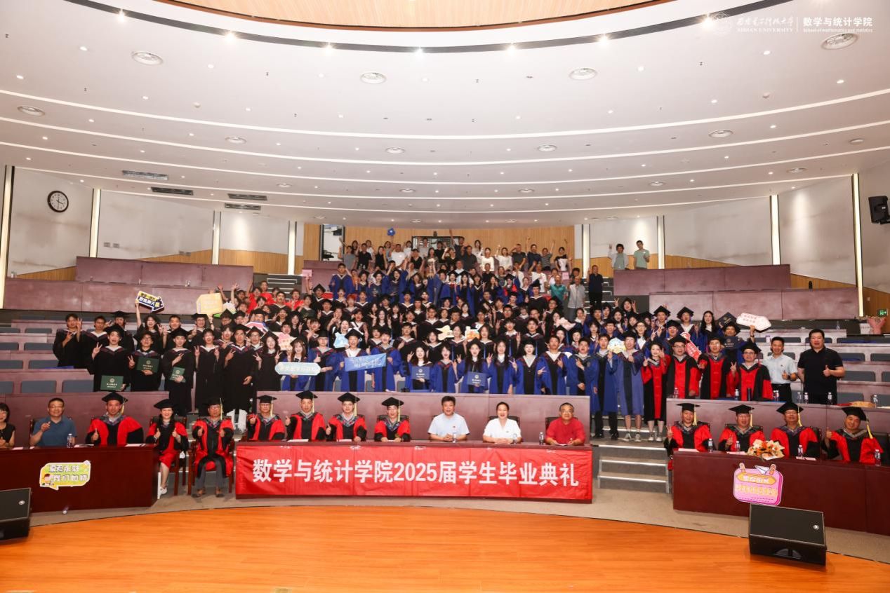 仪式结束后,全体老师与毕业生集中到前排合影留念,用镜头记录下这难忘的时刻。时光荏苒,毕业不是终点,而是新征程的起点。祝愿数学与统计学院2025届毕业生此去繁花似锦,以西电人的担当与数统人的智慧,在广阔天地中书写属于自己的精彩人生!
