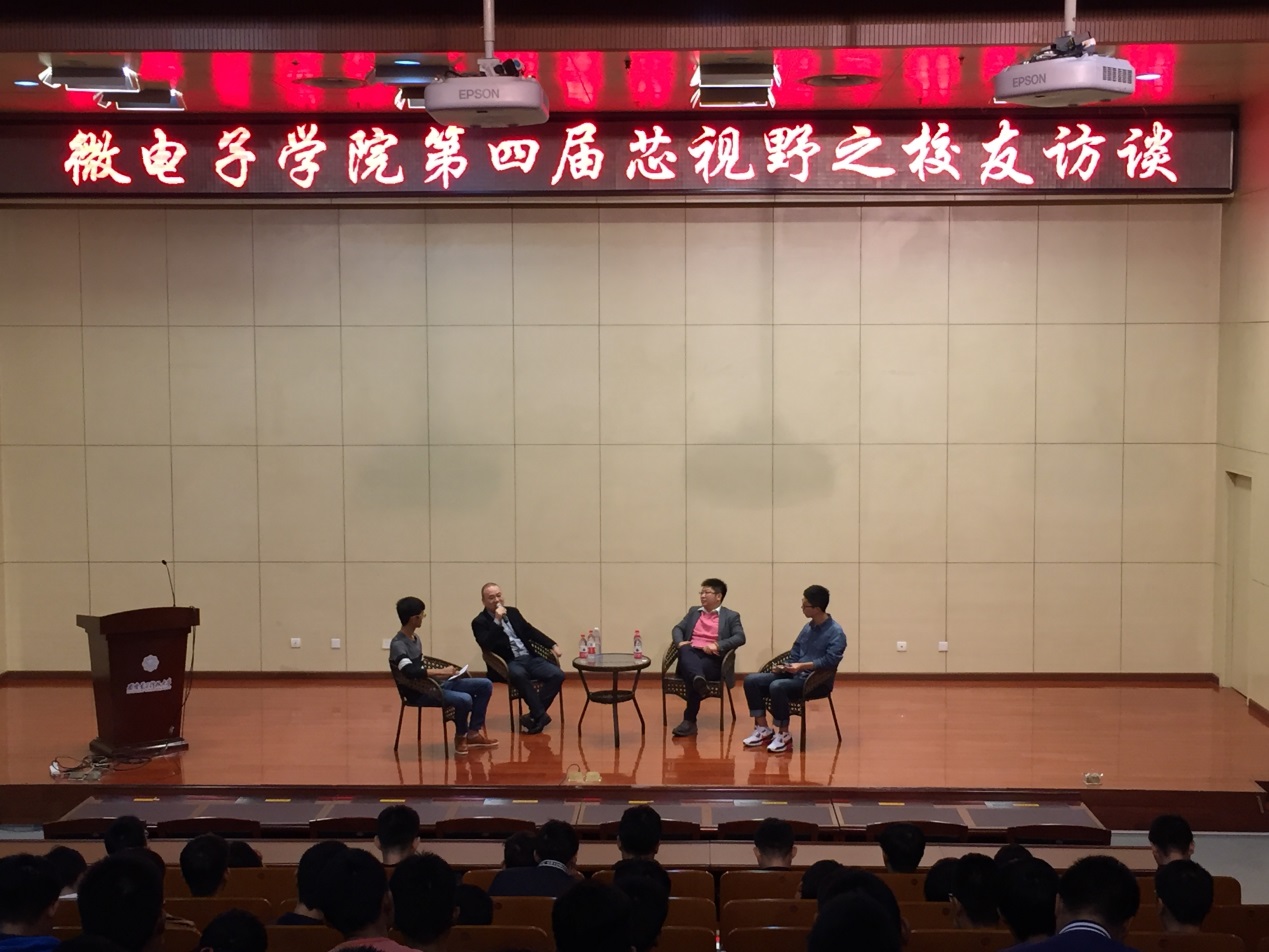 报告会开始,主持人首先介绍了朱老师和殷先生的行业简历。在同学们热烈的掌声中,朱老师和殷老师隆重登场。首先,这两位老师就我国集成电路产业的发展环境和趋势做了详细的介绍;接着又为同学们深入的分析了当前一段时期集成电路相关产业创新创业的大环境和需要注意的问题;最后两位老师鼓励同学们抓住当下,努力学习,在未来的集成电路产业去创造属于自己的奇迹!