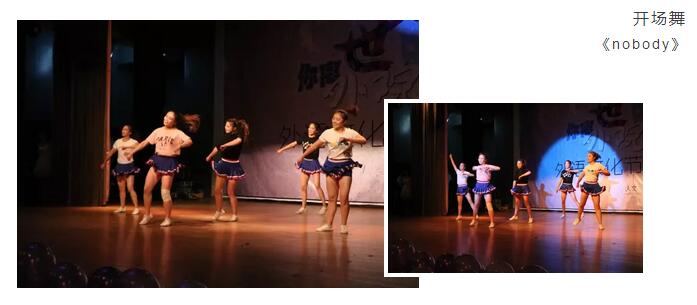 晚会首先由校健美操队同学带来的《nobody》拉开序幕,青春、活力、动感的健美操一开场就掀起了一股小高潮。接着四名主持人出场,分别用中、英、日三种语言共同宣布晚会正式开始。