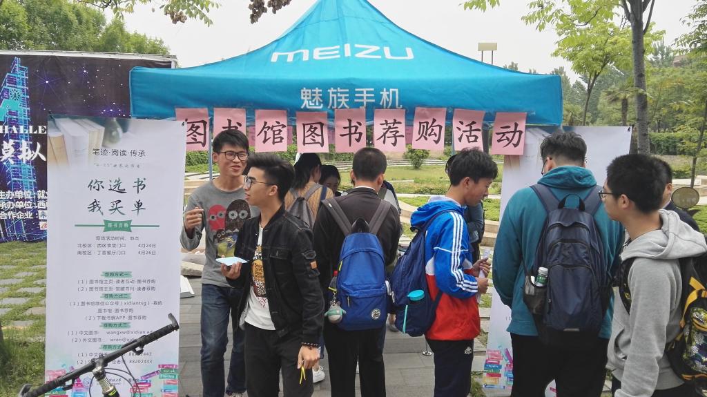 西电新闻网讯(通讯员 王祥伟)4月24日、26日,图书馆“4·23世界读书日”系列活动之“你选书,我买单”图书荐购模式宣传推广活动分别在北校区西区食堂门口、南校区丁香餐厅门口顺利举办。图书馆副馆长李文兴、图书馆副馆长黄小强参加并指导了活动的开展。此次活动秉承“笔迹·阅读·传承”的主旨,共计约1200余名师生参与,共向学校图书馆荐购了优秀中文图书548种,内容涵盖了通信工程、电子信息科学与技术、汉语言文学等多个专业。