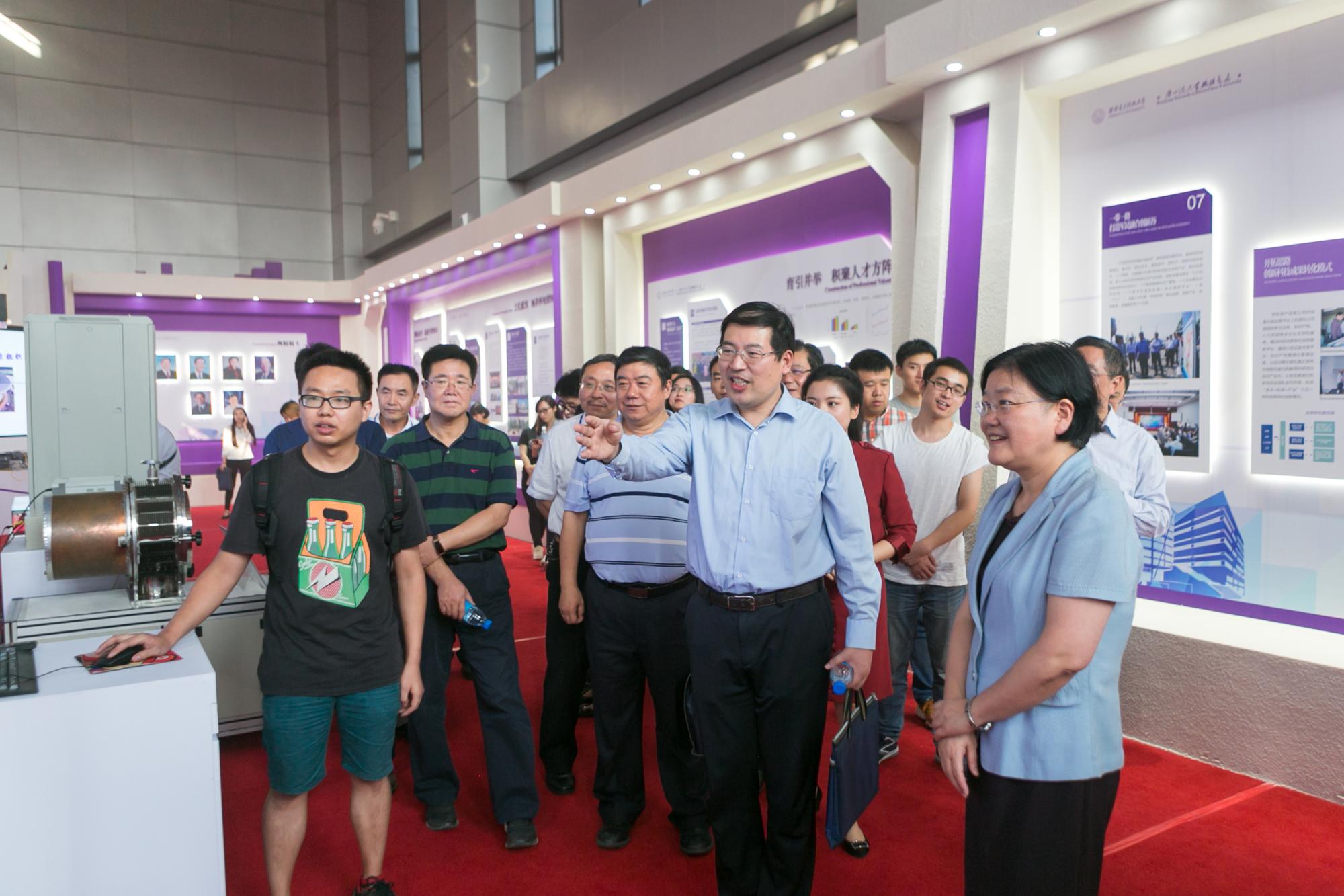 郑晓静先后来到位于体育馆的高校创新创业教育成果展、青年红色筑梦之旅实践团队展区和演讲报告会场地、西电十八大以来建设成就展、西安电子科技大学博物馆等会场,了解展厅设置及布展内容,听取了相关同志的讲解和介绍,并就此提出了改进建议。在体育馆,郑晓静观看了闭幕式文艺演出预演,向辛苦参演的演职人员表示慰问。