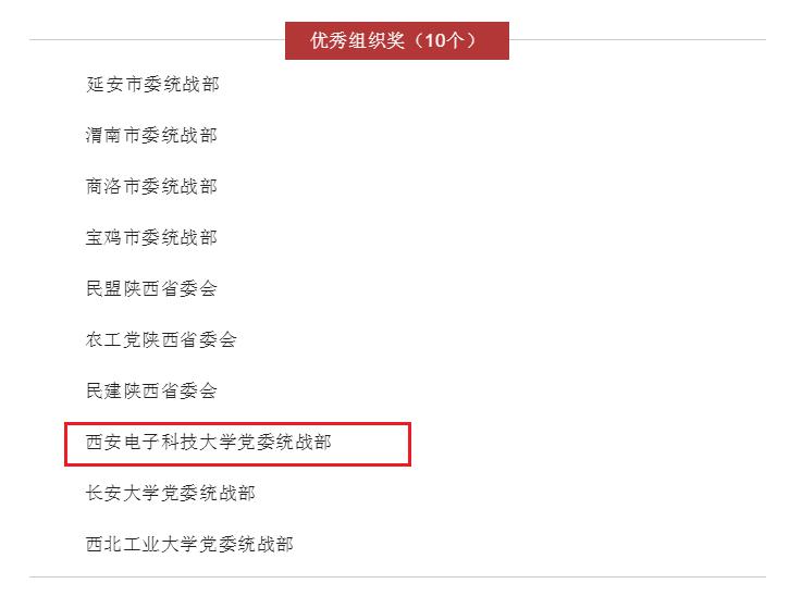 西电新闻网讯(通讯员 樊鹏)11月12日,由中共陕西省委统战部主办,省级各民主党派、省工商联协办,中华网陕西承办的“脱贫攻坚 奋斗有我”陕西统一战线随手拍短视频创新创意大赛总结大会在西安举行,大赛共收到参赛作品243部,对其中60部获奖作品予以表彰。西安电子科技大学党委统战部等10家单位荣获“优秀组织奖”。
