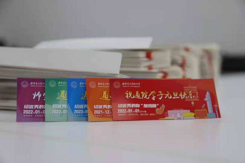 疫情蔓延,广大学子听从学校安排,不出校,“吃棉签”,努力抗击疫情。通信工程学院惦记身处北校区教学区的研究生,关心大家的生活,为同学们加餐,送上“加鸡腿”的暖心福利。据悉,北校区近1800名通院在校学生凭学院印制的“专属鸡腿券”,在每周一及元旦当天,可免费到食堂相应档口领取一个鸡腿,共计5次。
