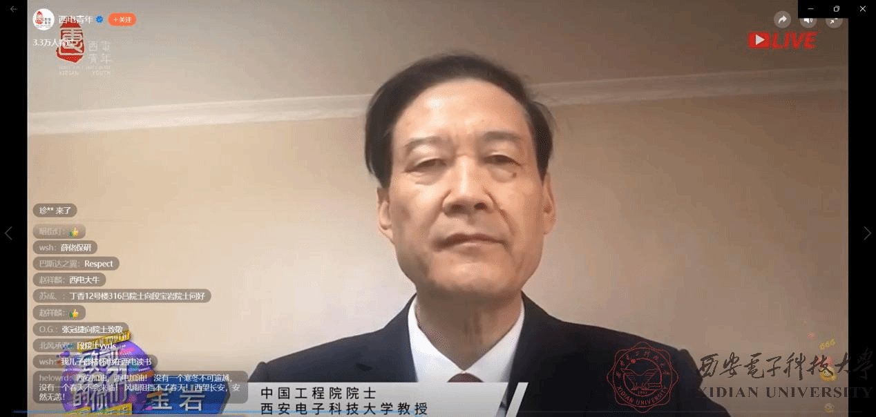 院士、大咖同框对话,凝聚奋进前行力量。中国工程院院士、电子机械工程专家段宝岩教授通过视频送来新年祝福,他指出,希望每一位同学要宁心静气,共克时艰,助力古城打好疫情阻击战。一是防控无小事,自律顾大局。要争做自我防控的模范为学校的防疫工作出一份力、尽一份责。二是临危应百变,思定谋远虑。要以更好的心态、更高的境界、更大的格局看待、对待疫情,沉淀自我,提升自我。三是静习岁月好,常怀感恩心。要向奋斗在一线的工作者与志愿者致敬、学习。