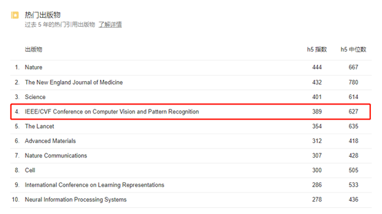 据悉,CVPR是IEEE国际计算机视觉与模式识别会议IEEE Conference on Computer Vision and Pattern Recognition的缩,是计算机视觉国际三大顶会(CVPR, ICCV, ECCV)之一。该会议历来受国际学术界和工业界的重视,是国际计算机视觉研究机构研究实力排名的重要依据。CVPR在最新的Google Scholar热门出版物排行中排名第4,H5中位数627,在理工类出版物中仅次于Nature, Science等杂志。
