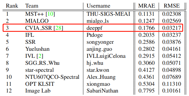 NTIRE是近年来计算机图像恢复领域最具影响力的全球性赛事之一,致力于推动退化图像内容恢复、缺失信息填补等图像处理关键问题的演进,面向实际工程应用场景提出优秀解决方案。其中,光谱重建赛道旨在通过单张RGB图像作为输入,通过构建深度神经网络生成对应的具有31通道的高光谱图像。NTIRE已成功举办六届挑战赛,是国际范围内最具影响力的视频和图像复原竞赛。本次光谱重建竞赛由苏黎世联邦理工学院作为主办方,吸引了来自包括西安电子科技大学、清华大学、哈佛大学、苏黎世联邦理工学院以及小米在内的世界各国知名高校、公司以及研究院所的240多个团队参加。